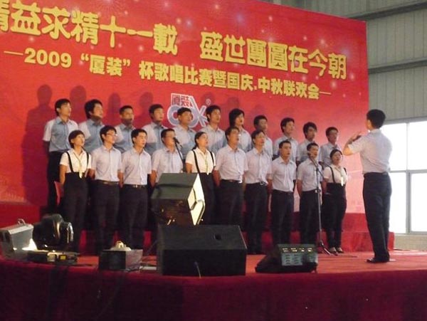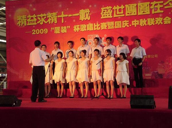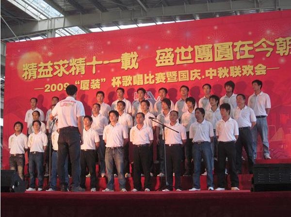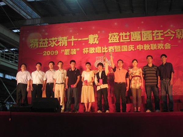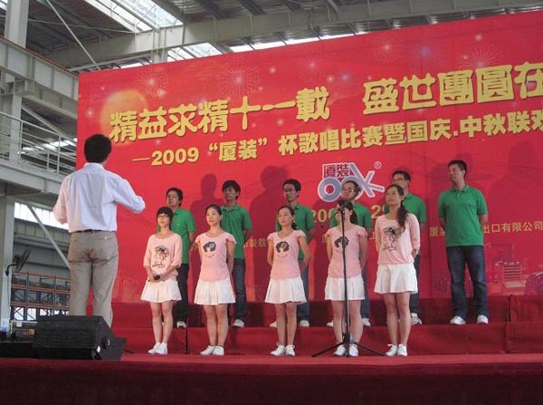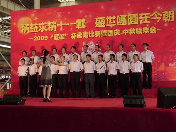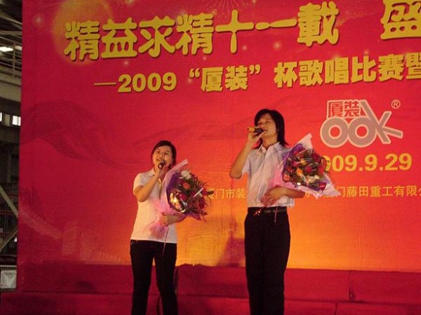 9月29日下午,2009年度“廈裝杯”歌唱比賽在廈裝公司總裝車間舉行。此次歌唱比賽以“精益求精十一載、盛世團(tuán)圓在今朝”為主題,賀祖國(guó)60周年華誕、喜迎中秋、慶祝廈裝成立11周年。公司及各部門從6月份開始籌備此次比賽,此次比賽分為集體組和個(gè)人組,集體組(合唱)以部門為單位,最終有6支隊(duì)進(jìn)入當(dāng)天的決賽,個(gè)人組通過先前的部門推薦及預(yù)賽選拔,最終有11人闖入決賽。