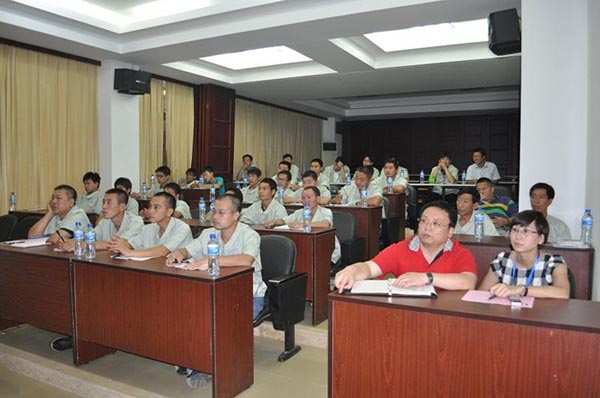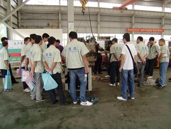 本次研討學習班共有來自全國各地區(qū)共計40名的一線服務人員參加。此次學習班,引起我司領導高度重視,不僅組織了相關部門領導系統(tǒng)授課:從新品介紹到各個機型的特點,從發(fā)動機故障判斷維修到管路液壓件原理介紹,從制動系統(tǒng)學習到油缸的拆裝;而且與相關配套廠商協(xié)商,組織全體學員到相應的工廠系統(tǒng)學習驅(qū)動橋、變速箱、變矩器等主要零配件安裝維護課程!